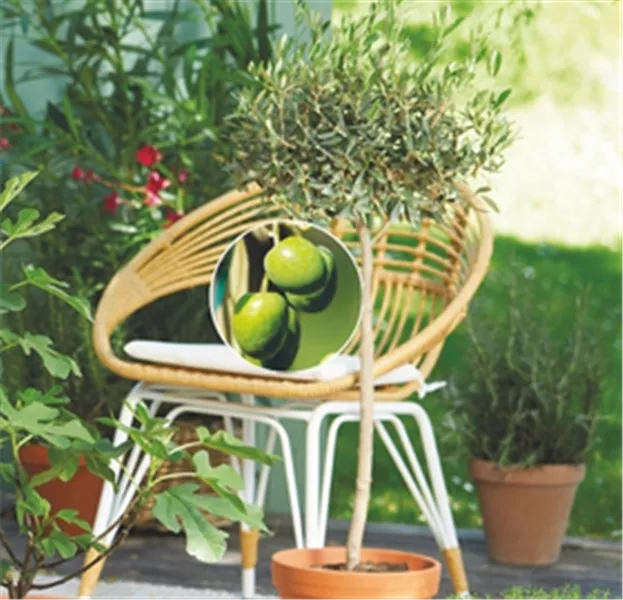 Silbrig schimmernde Blätter, markante Kronen und eine ruhige Präsenz: Das OLIVEN-STäMMCHEN (Olea europaea), der FEIGEN-BUSCH (Ficus carica) und der EUKALYPTUS-BUSCH (Eucalyptus gunnii) verleihen der Terrasse jene Gelassenheit, die man sonst aus südlichen Regionen kennt. Die Olive gilt seit Jahrhunderten als Symbol für Beständigkeit, Feigen zählen zu den ältesten Kulturpflanzen, und der Eukalyptus-Busch verströmt an warmen Tagen sein charakteristisches Aroma. Seine silbrigen Blätter enthalten übrigens besonders viele ätherische Öle, die sich bei Wärme intensiver entfalten. Viel Licht, ein warmer, geschützter Platz und gut drainiertes Substrat sind entscheidend, denn anhaltende Nässe im Wurzelbereich vertragen die drei Schönheiten nicht.