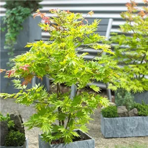 Der ursprünglich aus Ostasien stammende Fächerahorn (Acer palmatum) verbreitet wie kein anderes Gehölz den typisch asiatischen Charme in Ihrem Garten. In Japan war der Fächerahorn seit jeher fester Bestandteil der Gartengestaltung. Im 18. Jahrhundert fand das schöne Ziergehölz durch den Botaniker Carl Peter Thunberg seinen Weg nach Europa. Der botanische Name „palmatum“ leitet sich vom lateinischen Wort „Palma“ für „flache Hand“ ab und bezieht sich auf die Form seiner Blätter.
