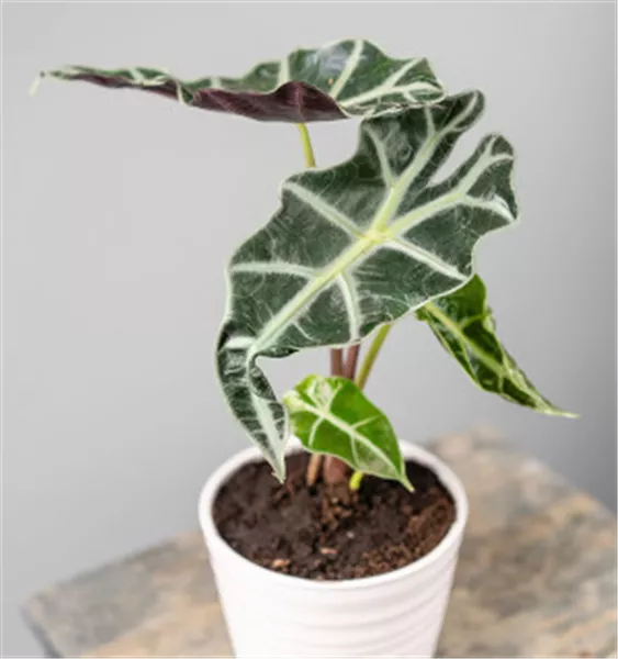 Platzieren Sie statt der klassischen gelben Narzisse (Narcissus) Zimmerpflanzen mit großen Blättern, wie z.B. Fensterblatt (Monstera), Pfeilblatt (Alocasia) oder die exotische Banane (Musa). Alle drei Grünpflanzen können sowohl solitär als auch im Trio neue, moderne Osterhighlights setzen. Die Blattschönheiten mögen einen hellen, halbschattigen Standort. In der prallen Sonne besteht die Gefahr, dass ihre schönen Blätter verbrennen. Gießen Sie die Pflanzen regelmäßig, vermeiden dabei aber Staunässe. Lassen Sie die Topfballen dennoch nie vollständig austrocknen. Prüfen Sie am besten vor dem nächsten Gießen, ob die Erde oben schon angetrocknet ist.